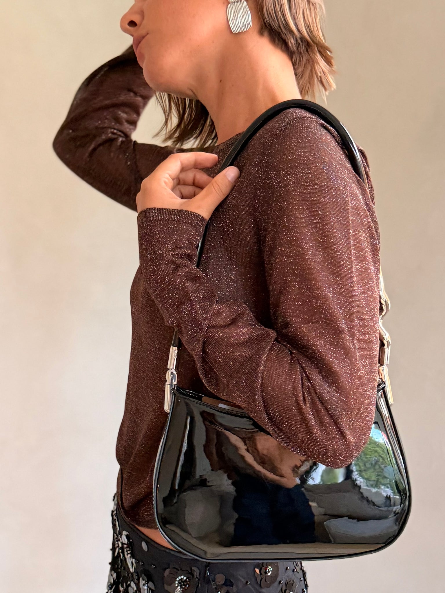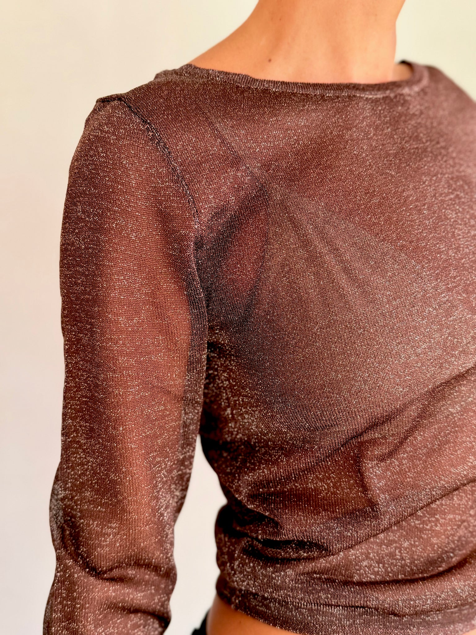 Shimmery long sleeve sheer top