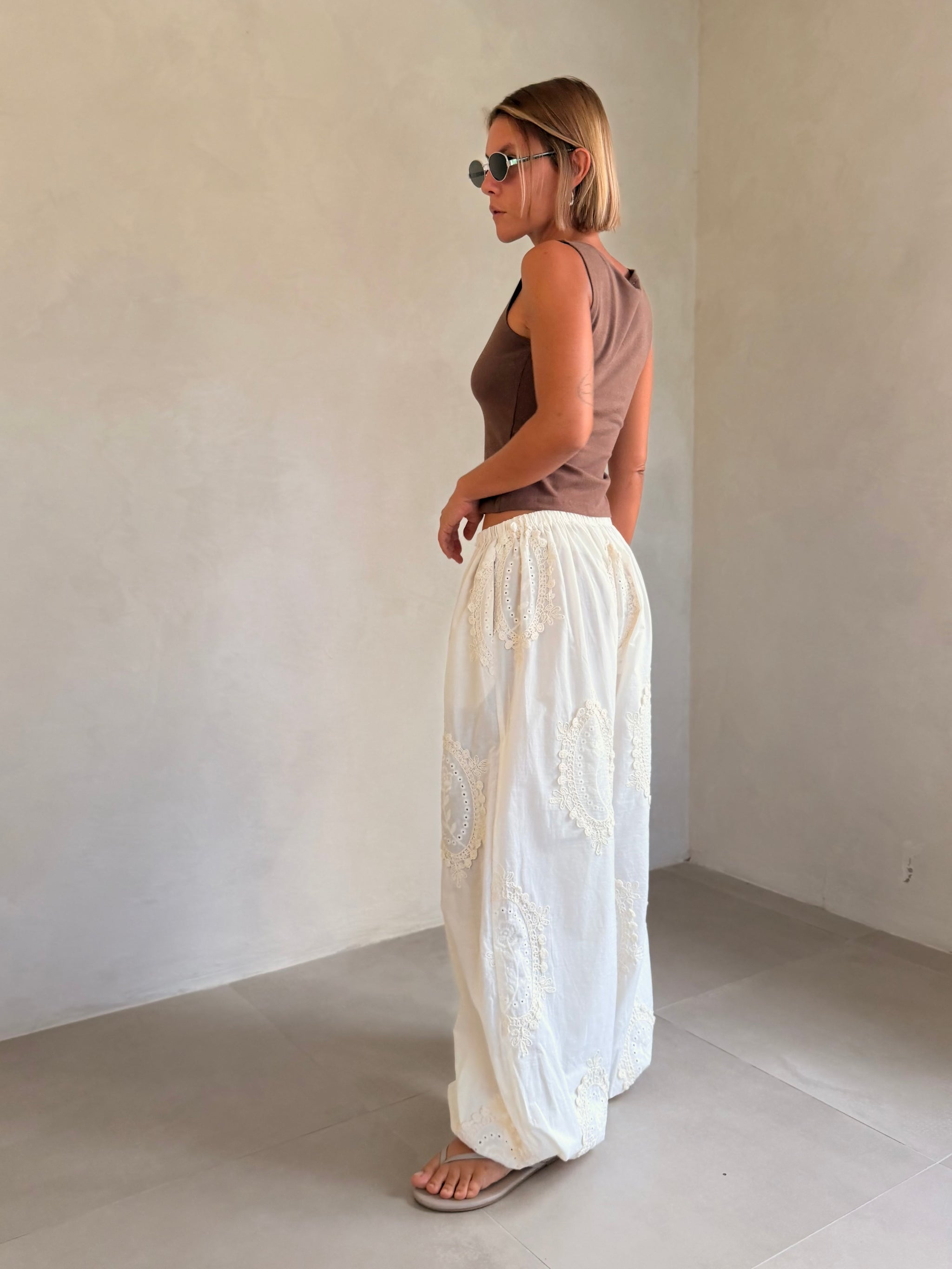 The prettiest cotton pants with stretchy waist and ankle