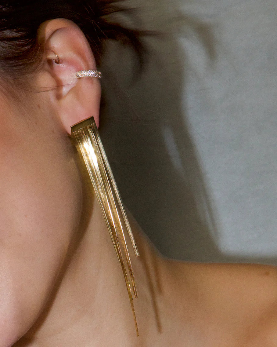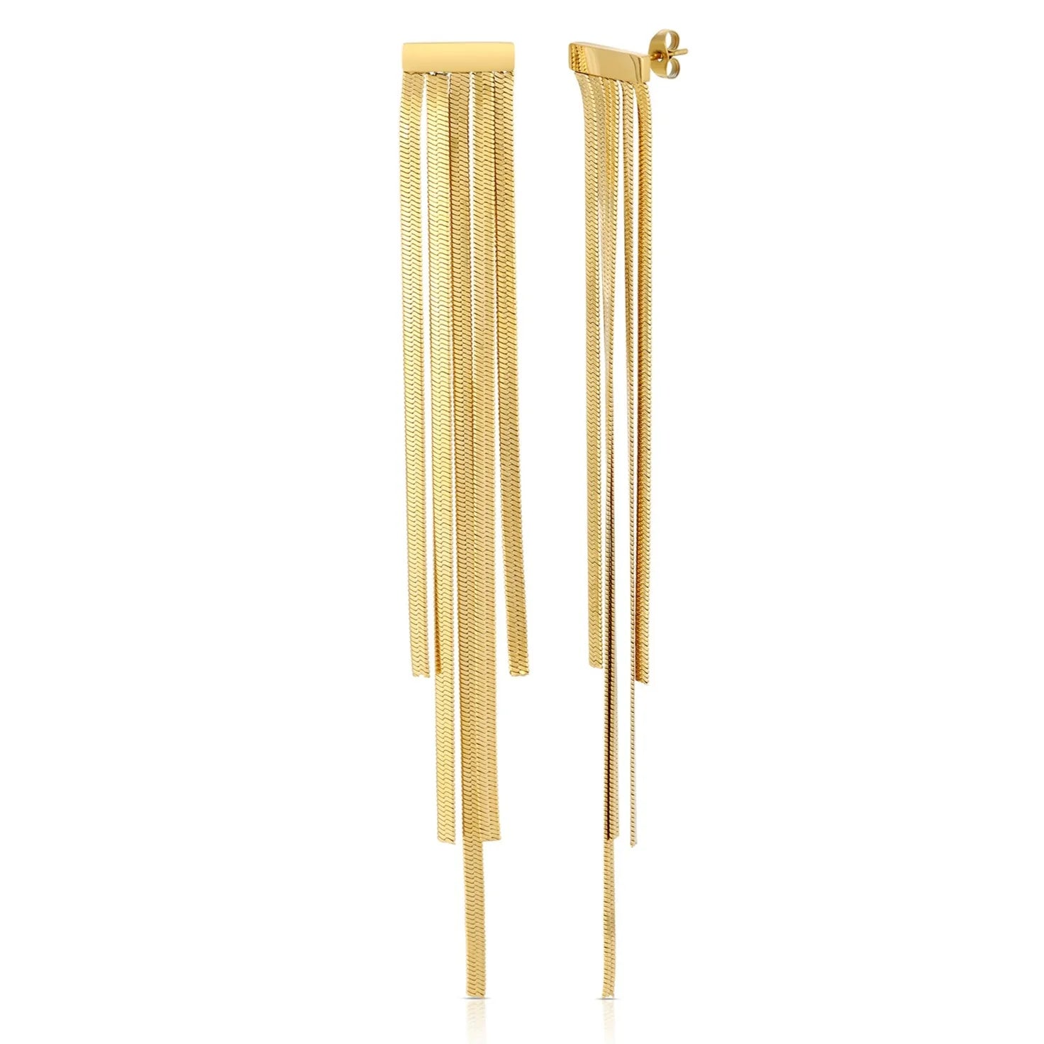 Get ready to make a splash with these 4.5" drop Waterfall Snake Chain Earrings, now available in 14K Gold plated Stainless Steel and Rhodium plated Stainless Steel.